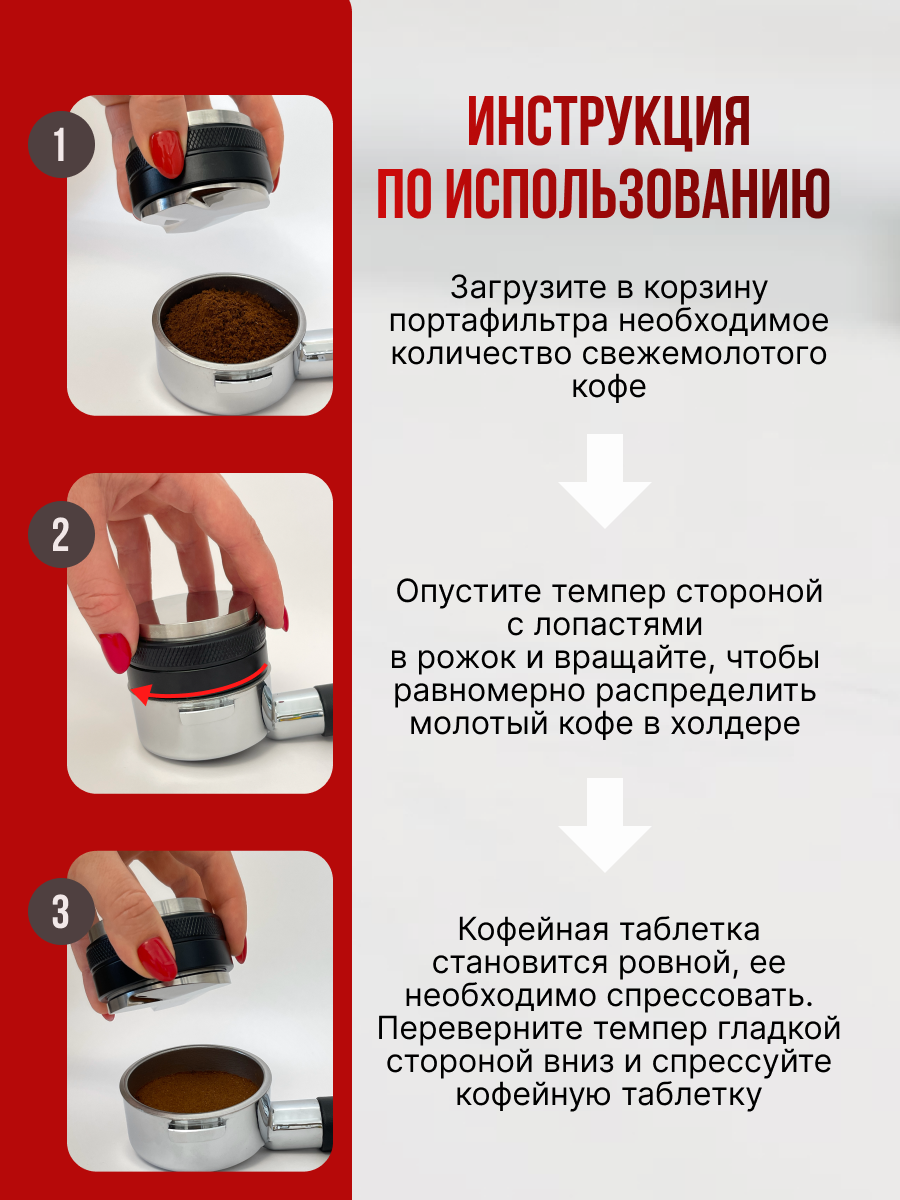 Отзывы на Темпер для кофе двухсторонний 51 мм для кофеварки рожковой, разравниватель и пресс для темпинга