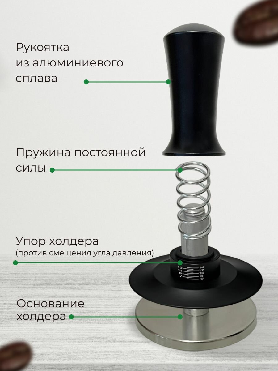10 цен на Темпер для кофе 58мм, для рожковых кофемашин, нажимной механизм, металл, черный