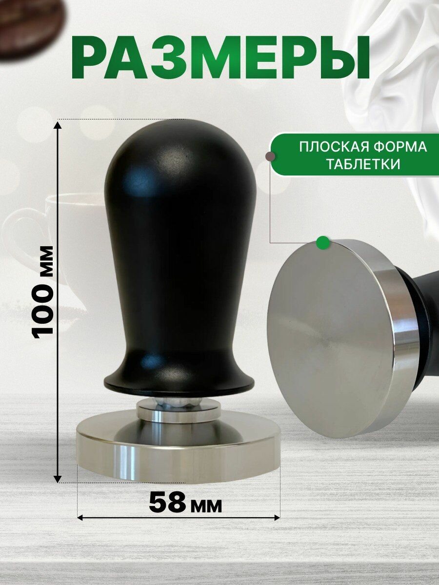 Темпер для кофе, 58мм, сталь, дерево, для рожковой кофеварки, черный 1 080 ₽