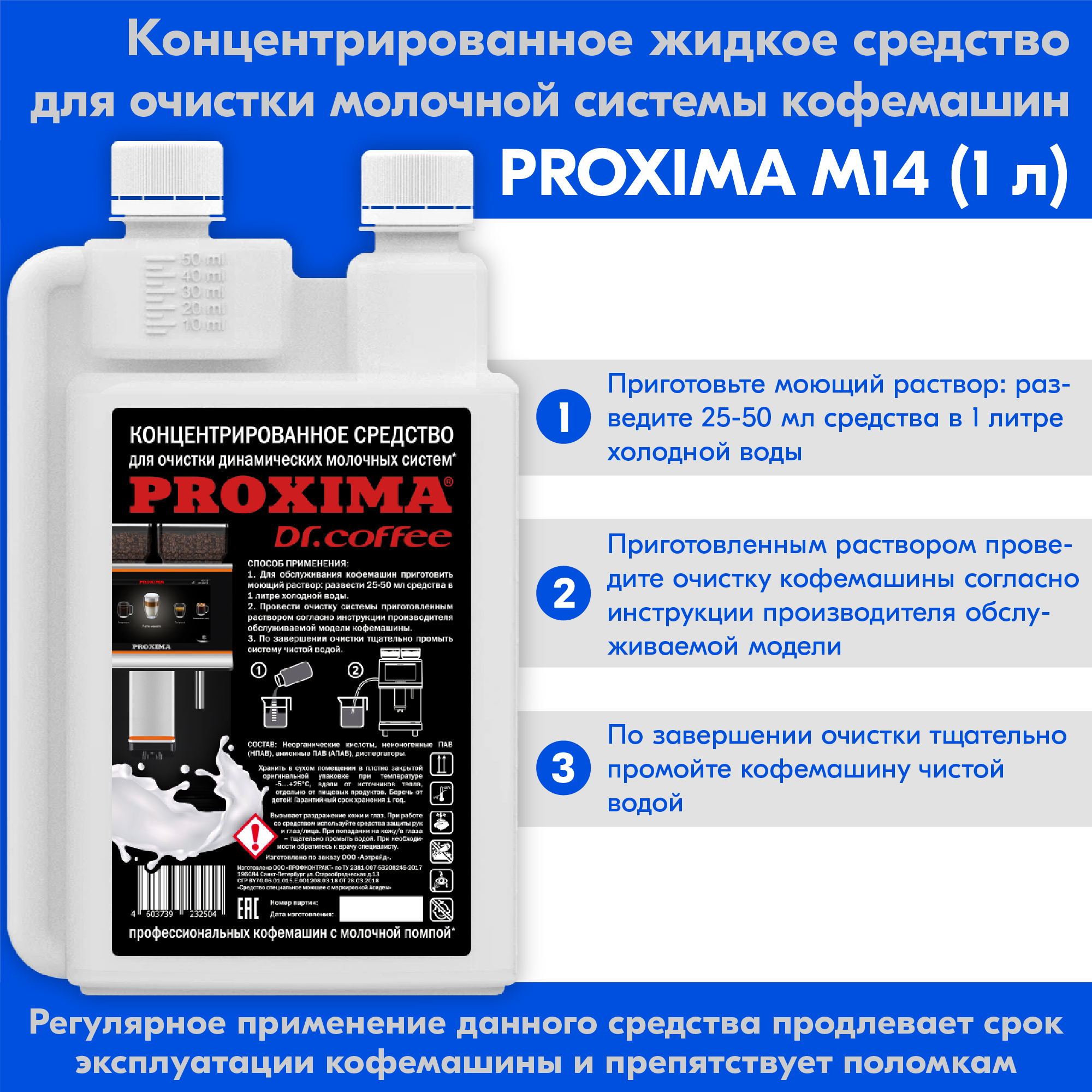 Средство очистки молочной системы в высокопроизводительных кофемашинах PROXIMA M14 (1 л) Концентрат информация: