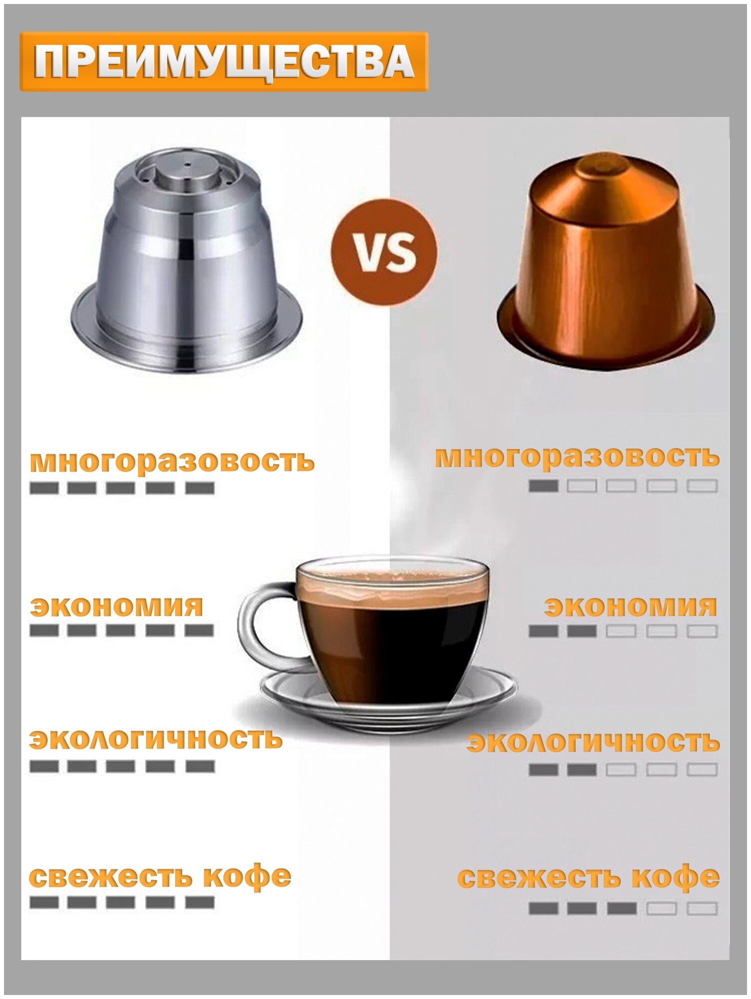Отзывы на Капсула для кофемашины nespresso многоразовая нержавеющая сталь в наборе с темпером, мерной ложечкой и щеткой