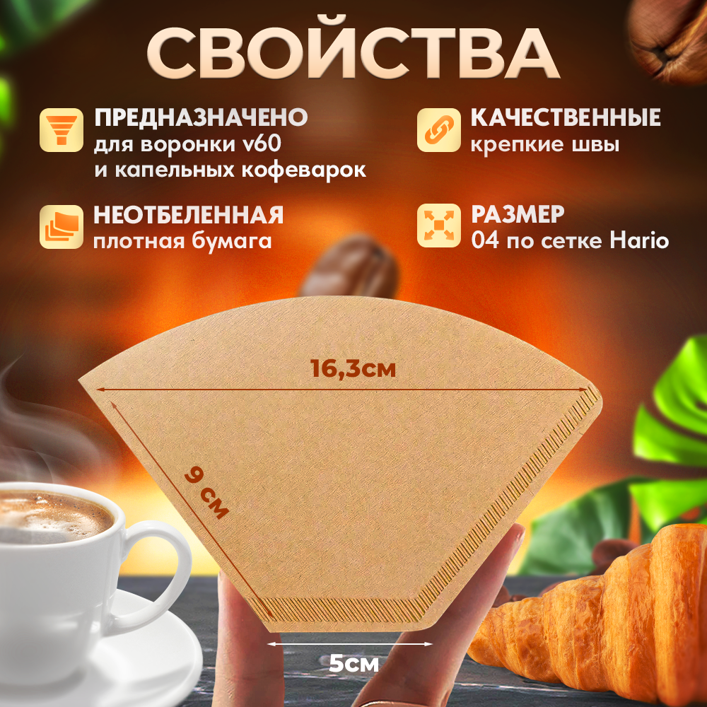 10 цен на Фильтры бумажные Coffee&Press №02 трапециевидные неотбеленные для кофеварки, пуровера 2-4 чашки, 100 шт