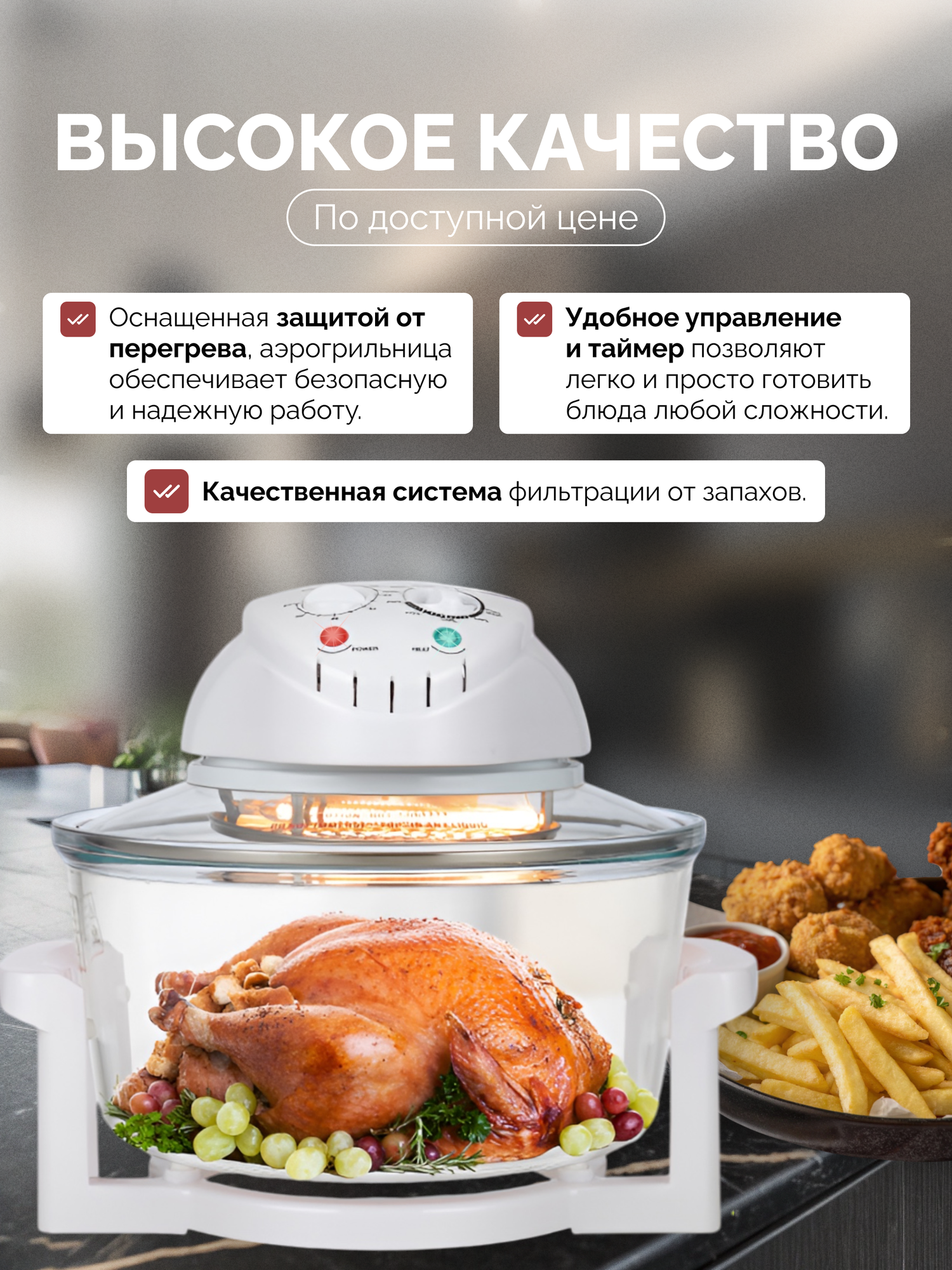 10 цен на Аэро-грильница с прозрачным стеклом, Большая емкость 17 Л, С защитой от перегрева 8в1