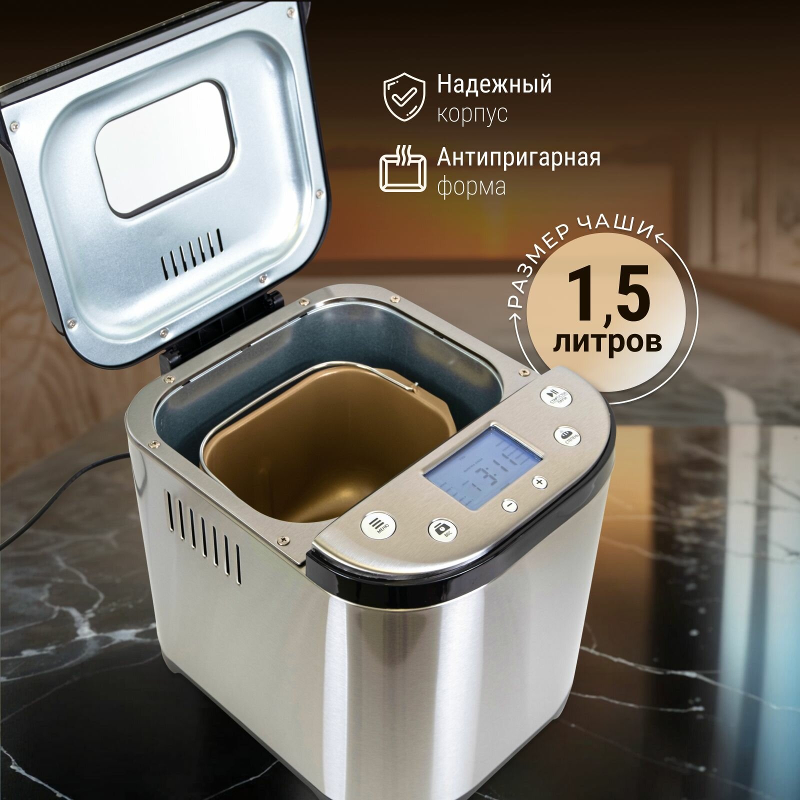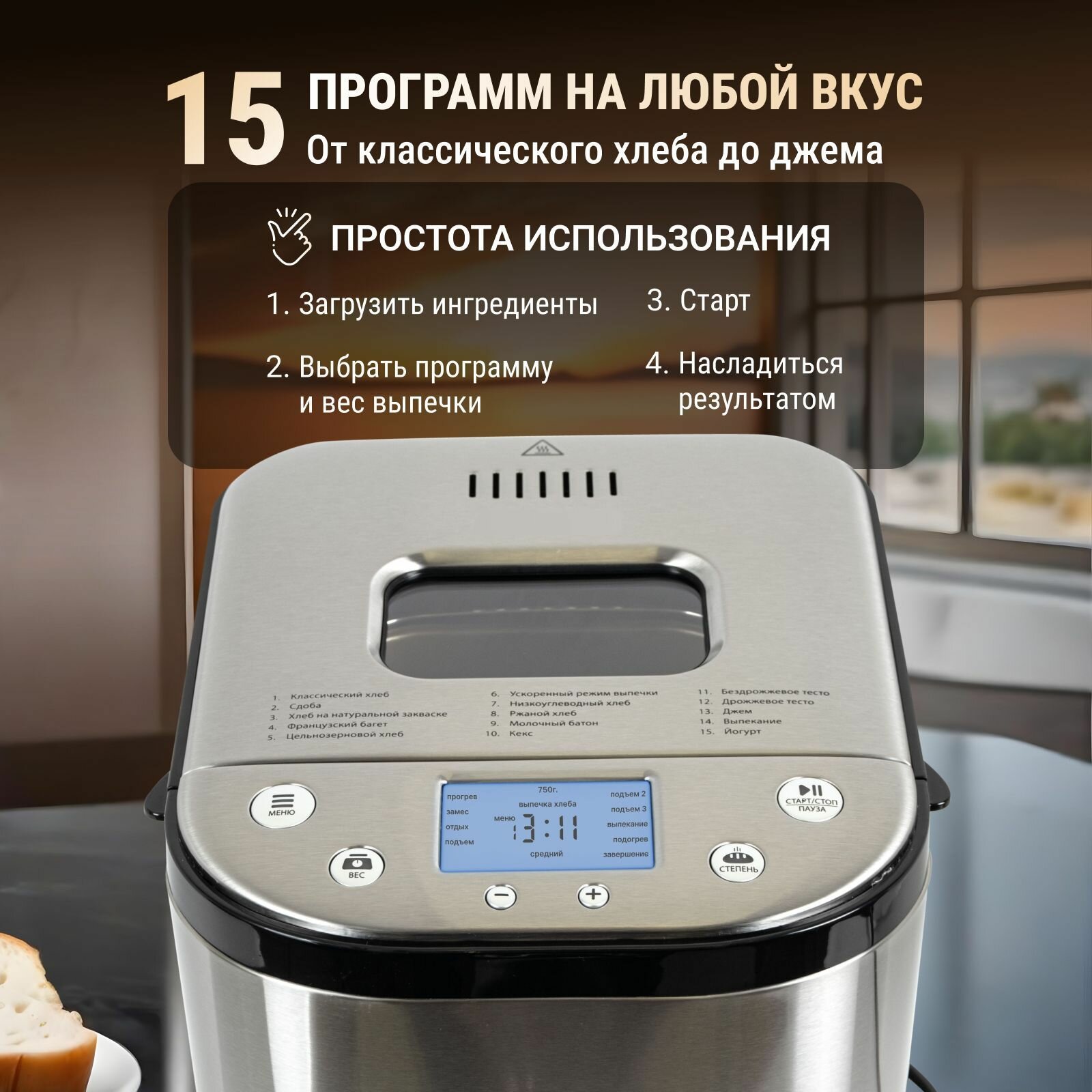 10 цен на Хлебопечка с замесом теста, 800 Вт, 15 автоматических программ + книга рецептов