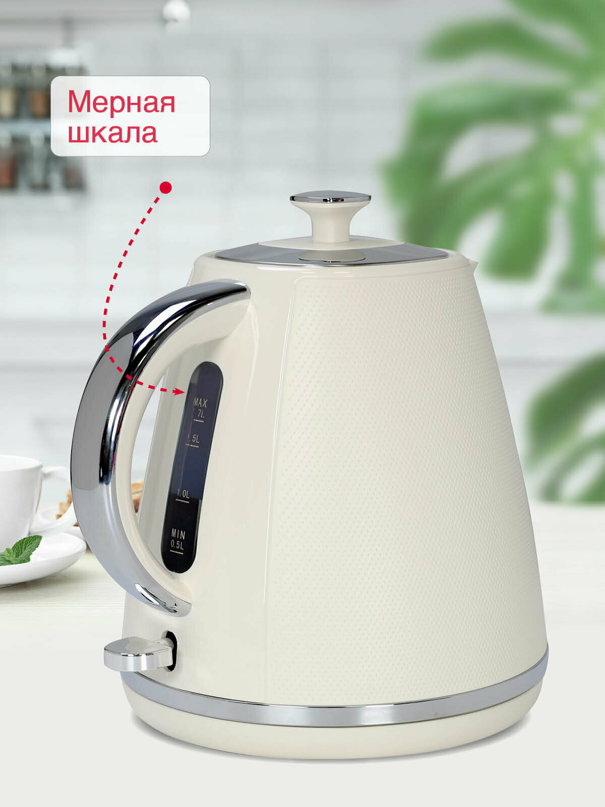 Электрический чайник DELTA DL-1109, 2 литра, 1500 Вт, двойные стенки, бежевый