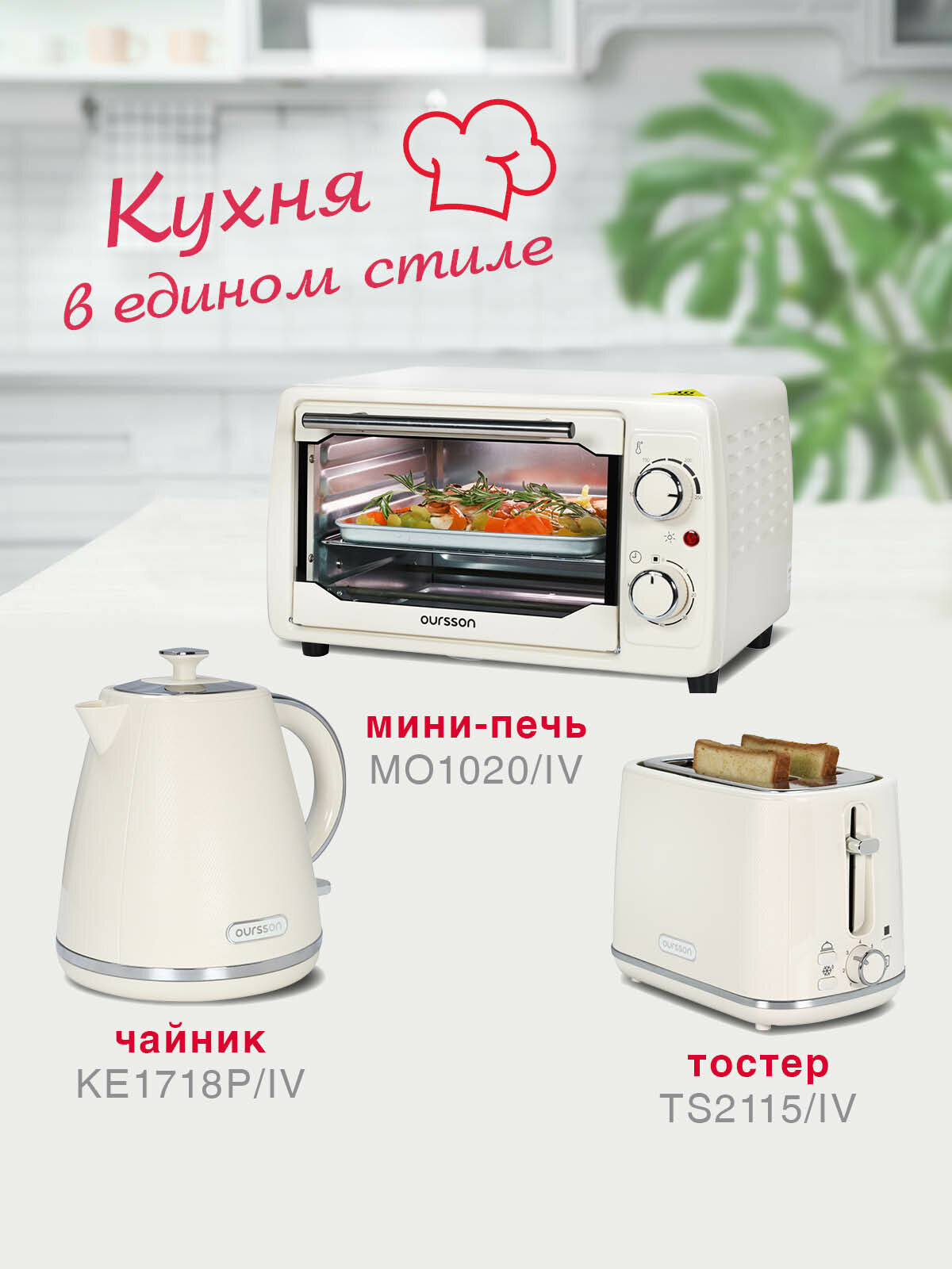 10 цен на Электрический чайник Oursson "KE1718P", 2200Вт, 1,7л, блокировка, вращение на 360°, бежевый