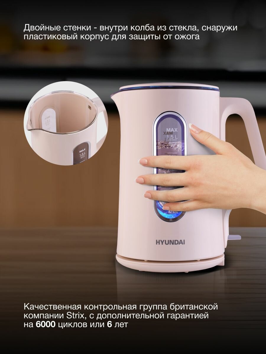 Отзывы на Чайник электрический Hyundai HYK-G8888 кремовый/прозрачный, стекло