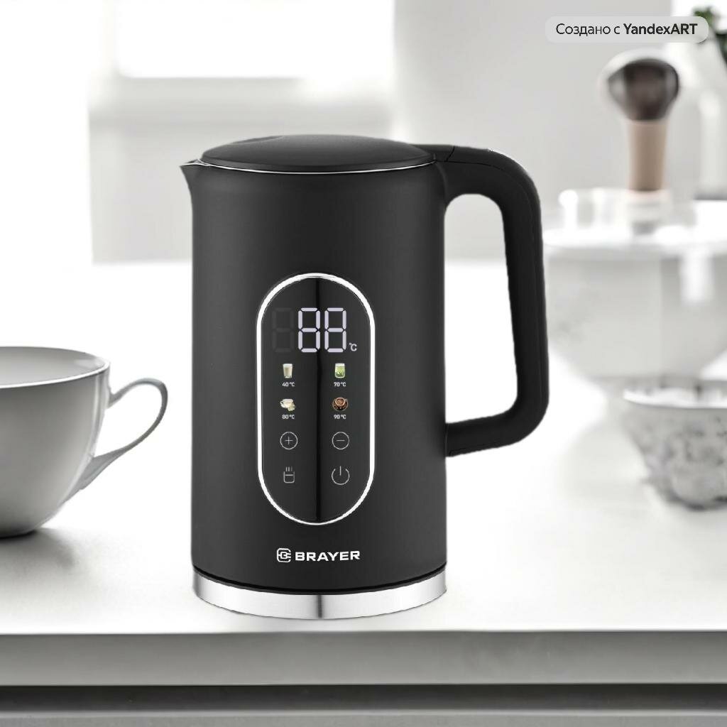 Отзывы на Чайник электрический BRAYER BR6107BK, 2200 Вт, 1,7 л, Cool Touch, cенсорное управл, автоотключ