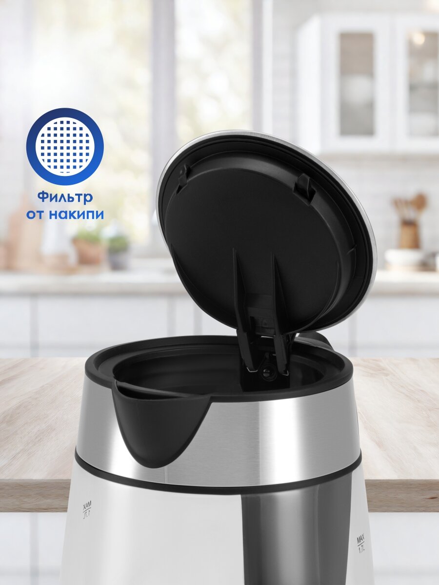 Чайник Hyundai HYK-S7770, нержавеющая сталь, 1,7 л, мощность 2200 Вт