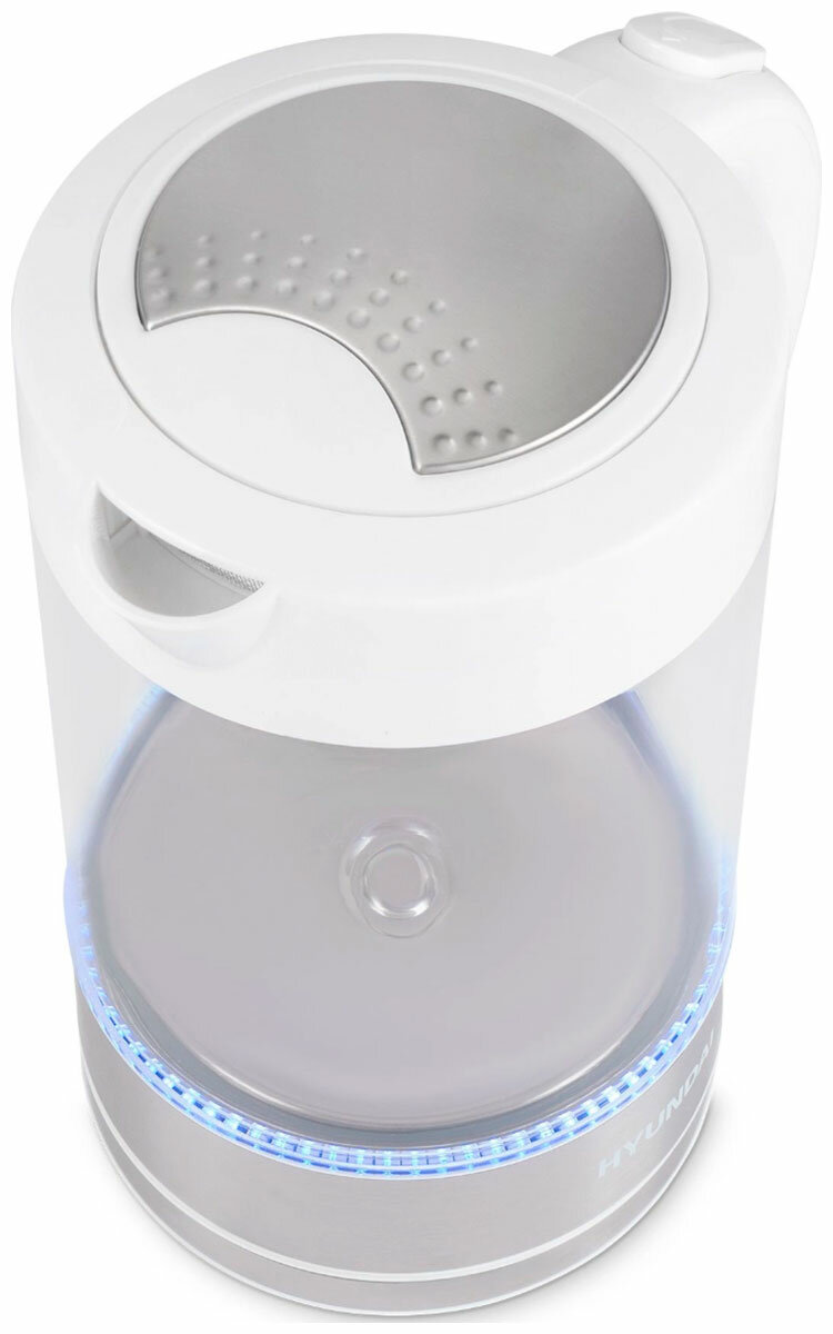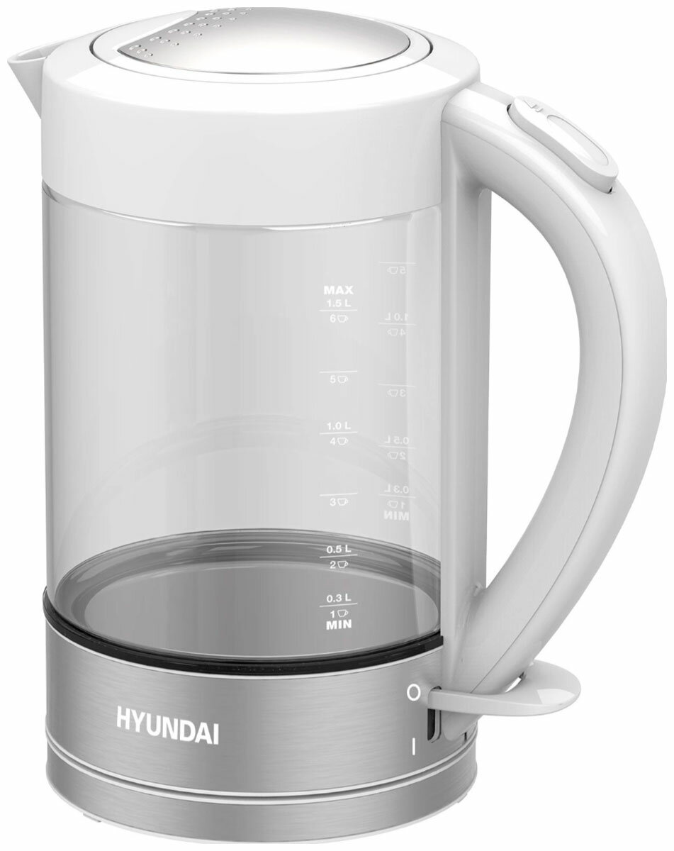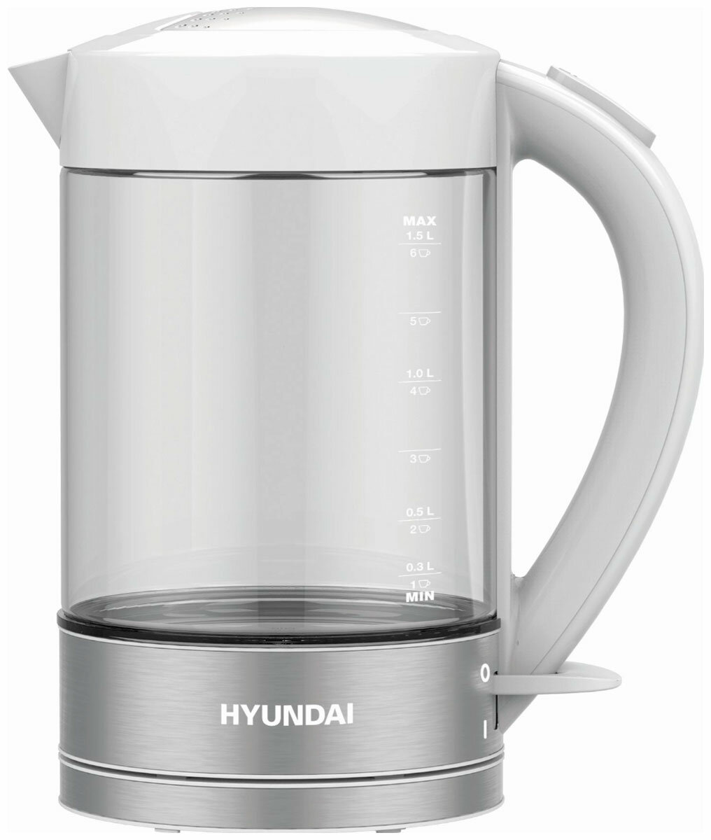 10 цен на Чайник электрический Hyundai HYK-G9990, 1.5л, 2000Вт, белый/серебристый (стекло)