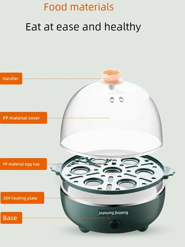 | Дополнительная информация | приготовление на пару, вареные яйца, 220В, вместимость 5 яиц, вместимость 6 яиц, нагревательная пластина 304, крышка из полипропилена, лоток для яиц из полипропилена, мощность 360Вт, защита от сухого горения, переключатель с одной кнопкой |