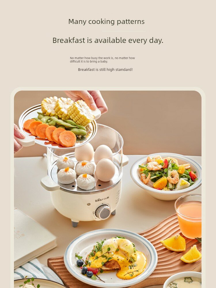 | Дополнительная информация | паровая кастрюля из нержавеющей стали, таймер на 30 минут, материалы, контактирующие с пищевыми продуктами, интеллектуальный беззаботный, многофункциональный, однослойное и двухслойное изменение по желанию, нагрев при приготовлении, гибкий переключатель, номинальная мощность: 360 вт, номинальное напряжение: 220 в-50 гц, режим управления: таймер с помощью ручки, вместимость: можно приготовить на пару 14 яиц |