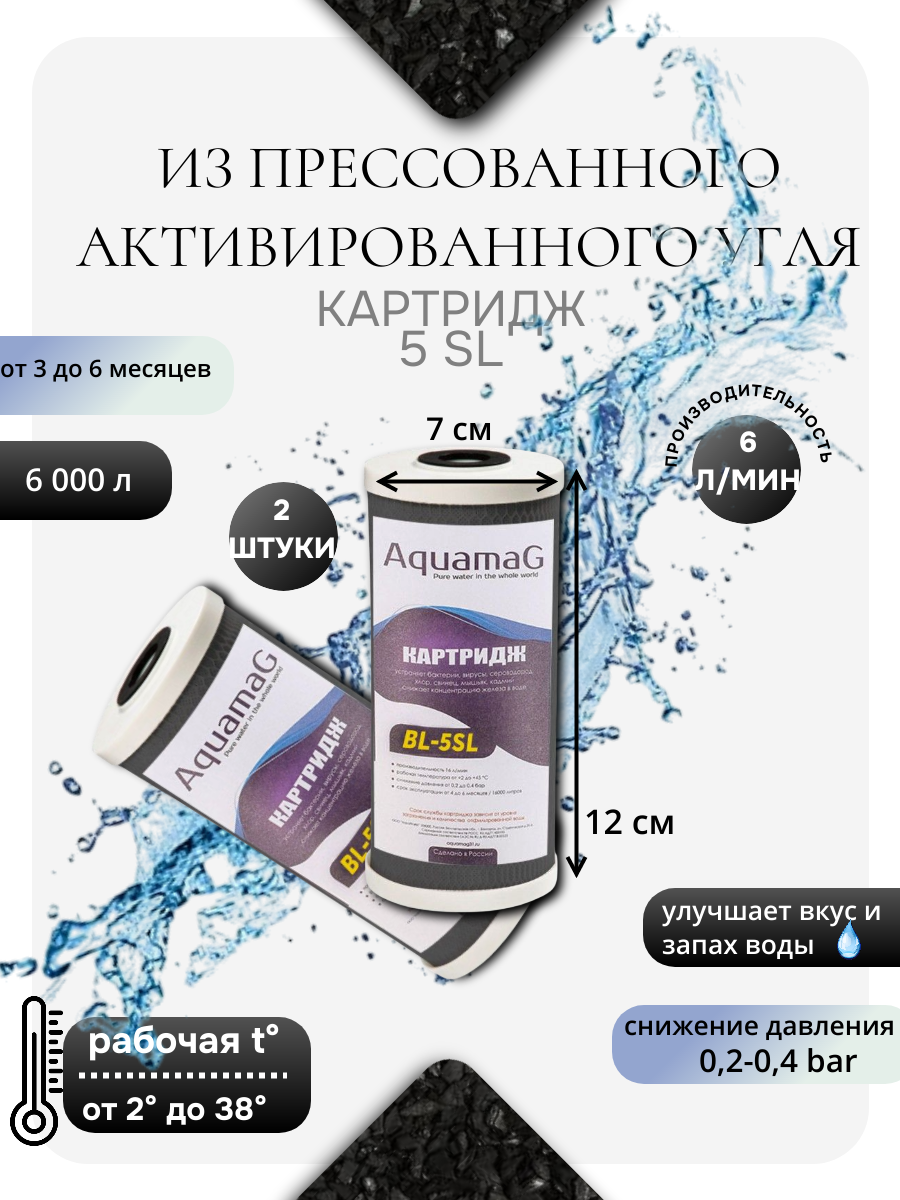 Картридж для фильтра воды с прессованным активированным углём BL 5SL (2 штуки) информация: