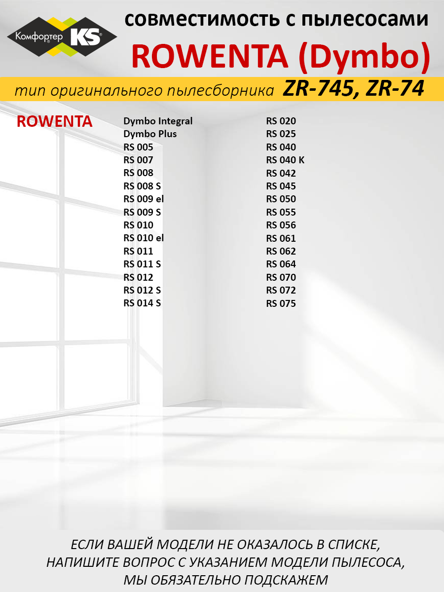 Пылесборники синтетические RW-02 для ROWENTA Dymbo (ZR-745, ZR-74), упаковка 5шт. информация: