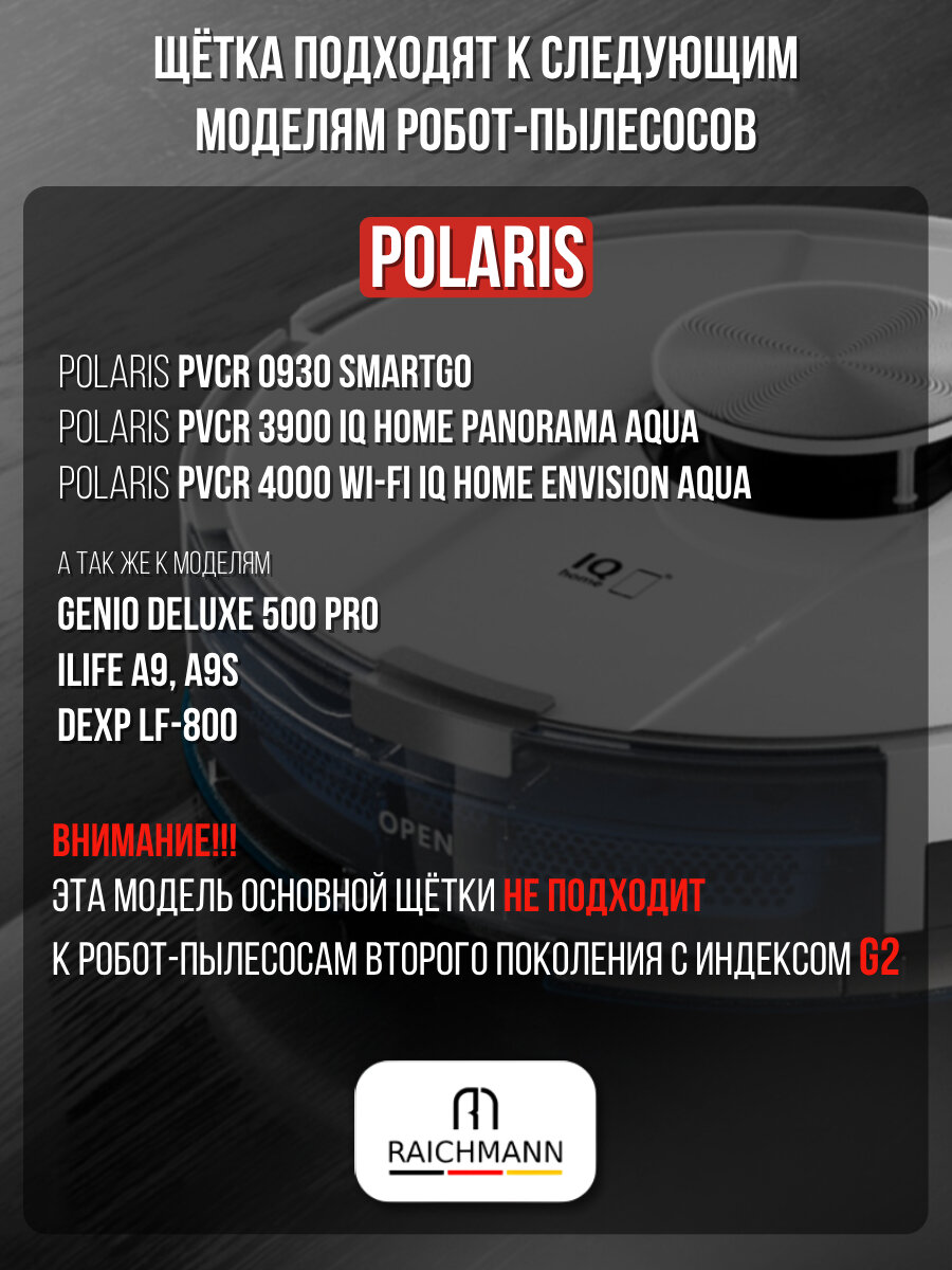 Основная щётка для робота-пылесоса Polaris PVCR 0930 SmartGo, PVCR 3900, 4000 WI-FI IQ Home, Genio Delux 500 Pro информация: