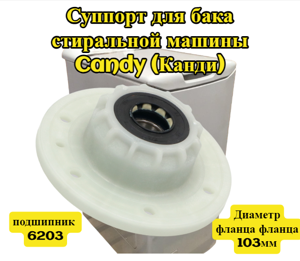 Суппорт для бака стиральной машины Candy (Канди), с подшипником 6203, Ø - фланца 103мм. cod092. 46002361, 46000260 информация: