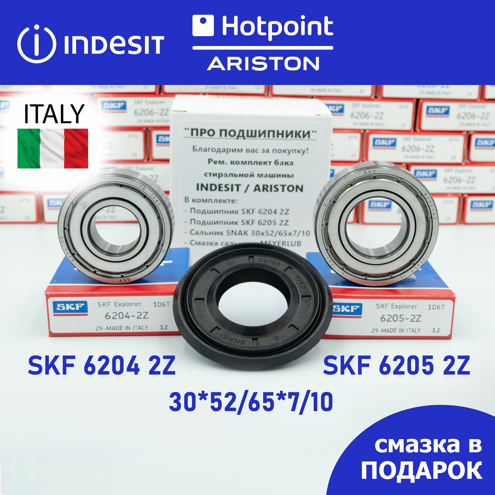 Отзывы на Ремкомплект бака для стиральной машины Indesit, Hotpoint Ariston / SKF 6204 2Z, 6205 2Z / сальник 30*52/65*7/10 + смазка