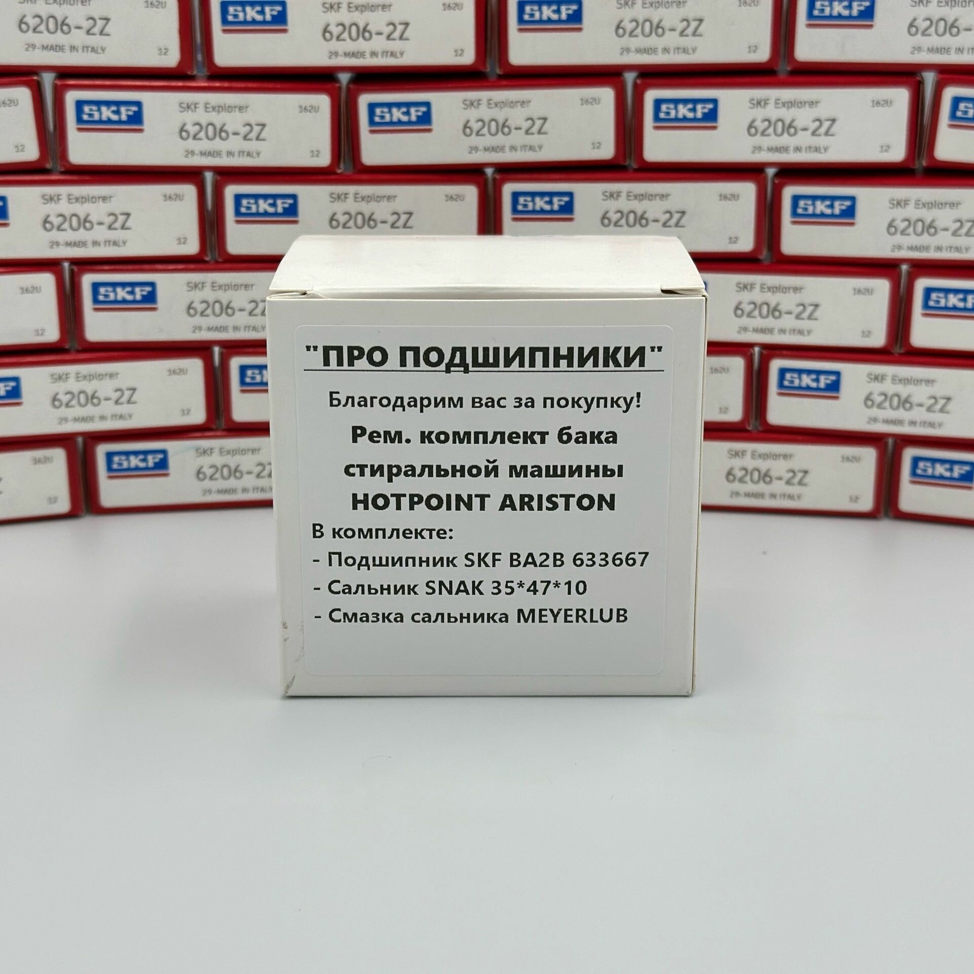 Ремкомплект бака для стиральной машины Indesit, Hotpoint Ariston - SKF BA2B 633667, сальник 35*47*10 / 35*47*8 + смазка информация: