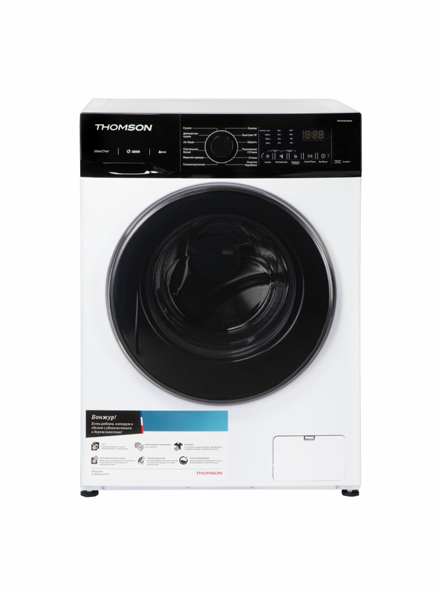 Отзывы на Стиральная машина с сушкой Thomson WD30E10I02, загрузка для стирки 10 кг, инверторный двигатель, белая/черная