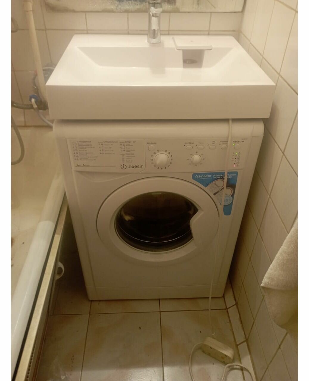 Отзывы на Стиральная машина под раковину Indesit IWUB 4105 и раковина Монако 60 над стиральной машиной / узкая стиральная машина с раковиной