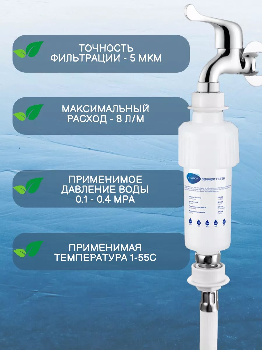 | Особенности | календарь замены фильтрующего модуля / прозрачный корпус / промывной |
