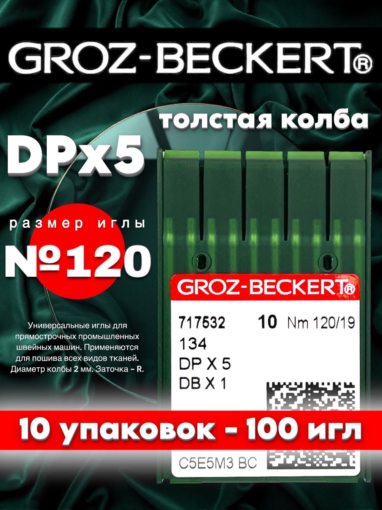 10 цен на (10 упаковок) GROZ-BECKERT DPx5 №120 (R) иглы промышленные универсальные