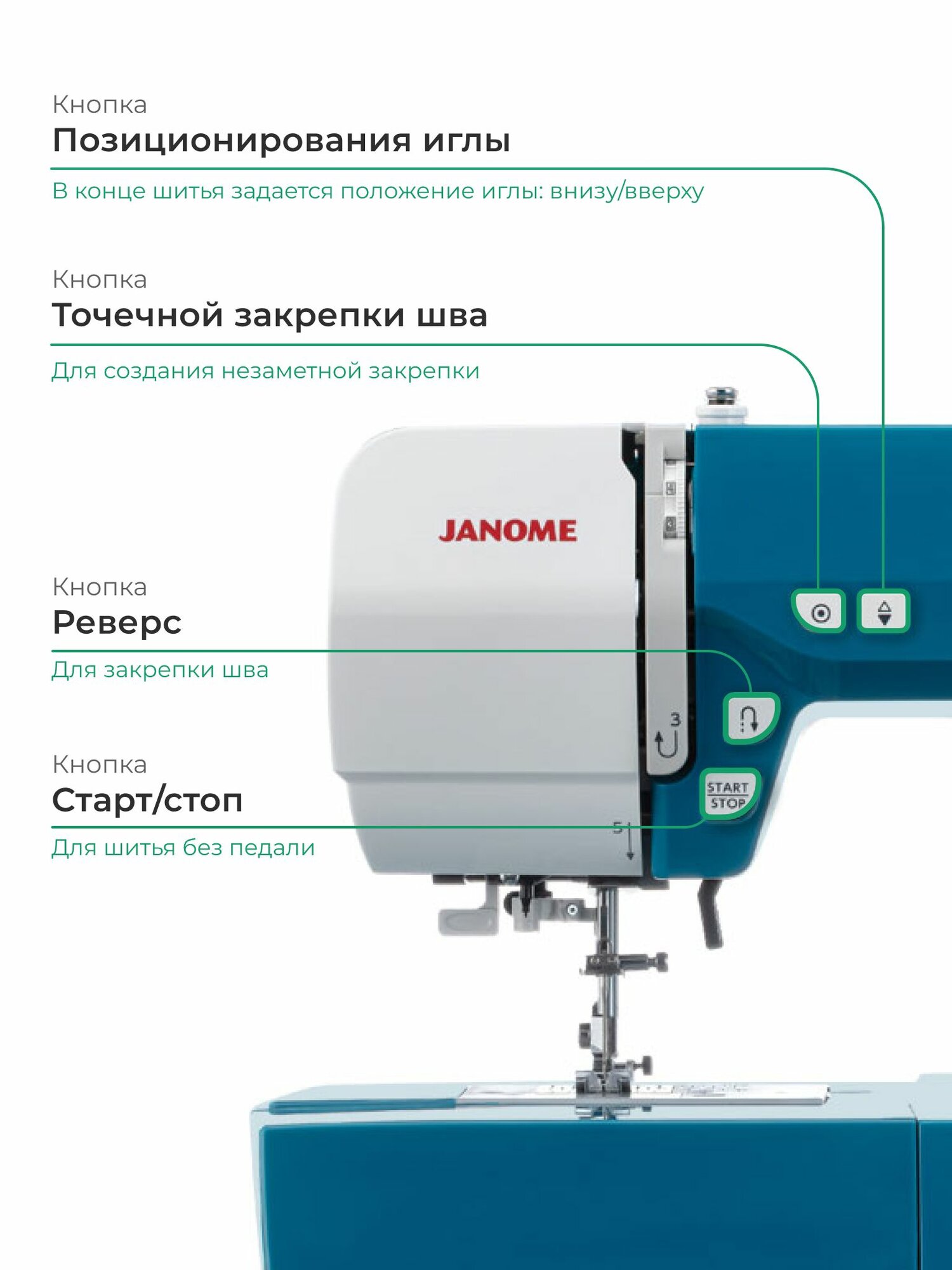 | Функциональные особенности швейного оборудования | Дисплей, Подсветка рабочей зоны, Реверс, Регулировка скорости шитья |