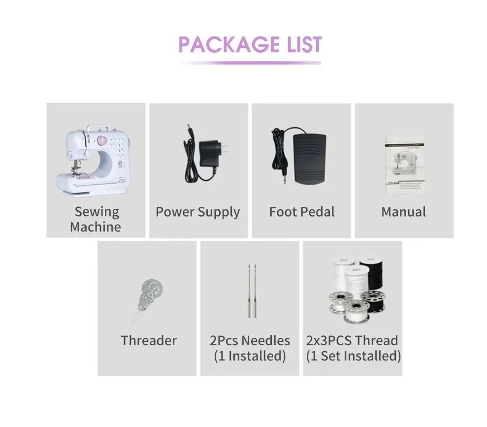 | Комплектация | Бытовая многофункциональная мини-электрическая швейная машина |