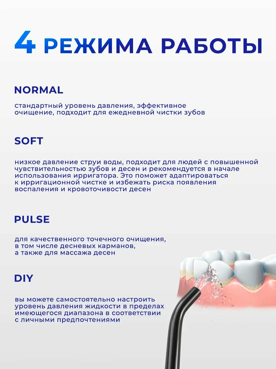 Ирригатор для полости рта портативный/для зубов,6 сменных насадок, 3 режимов для чистки зубов и брекетов языка