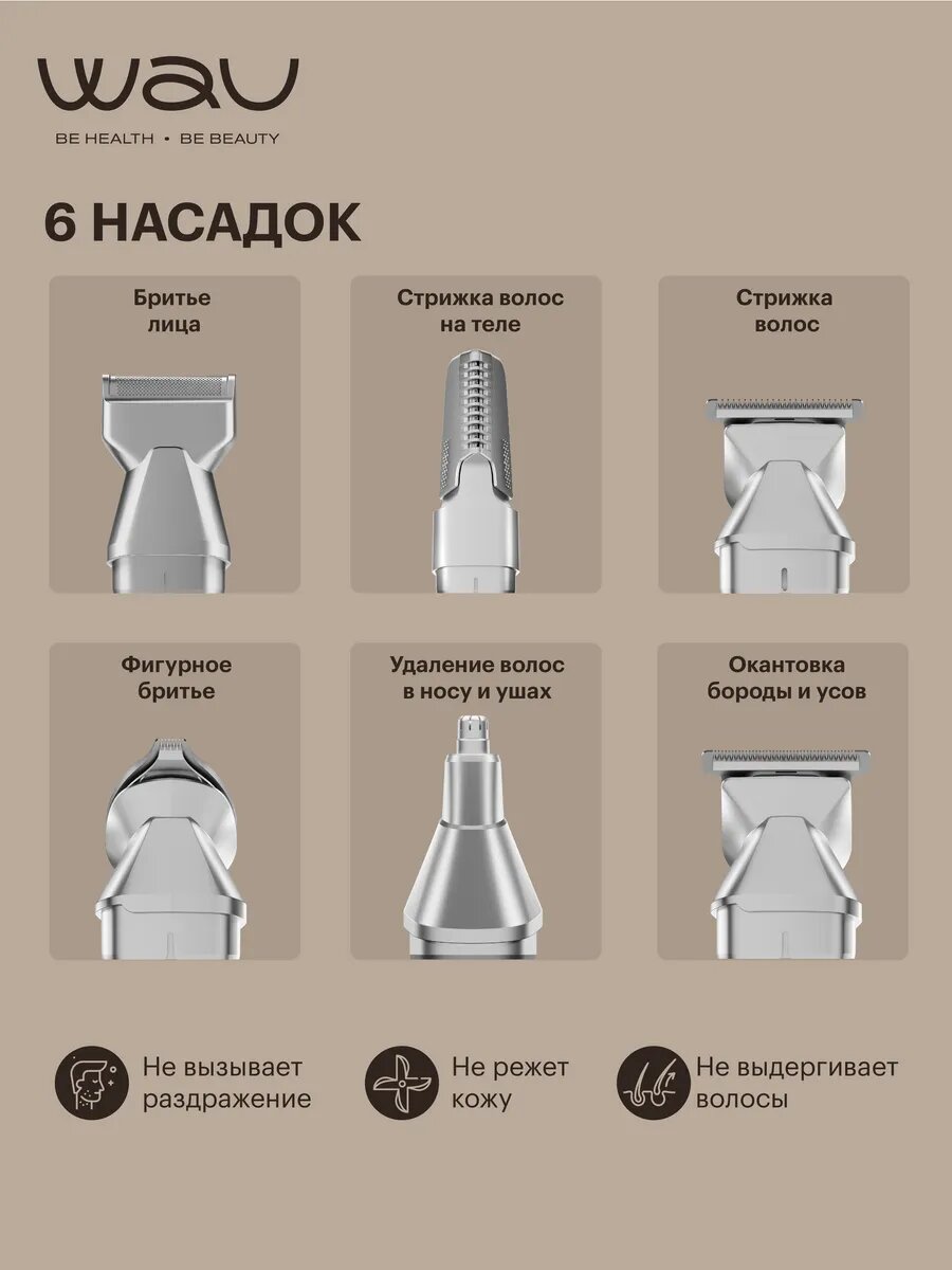WAU Универсальный триммер для бритья и стрижек 6 в1 HIGE PRO информация: