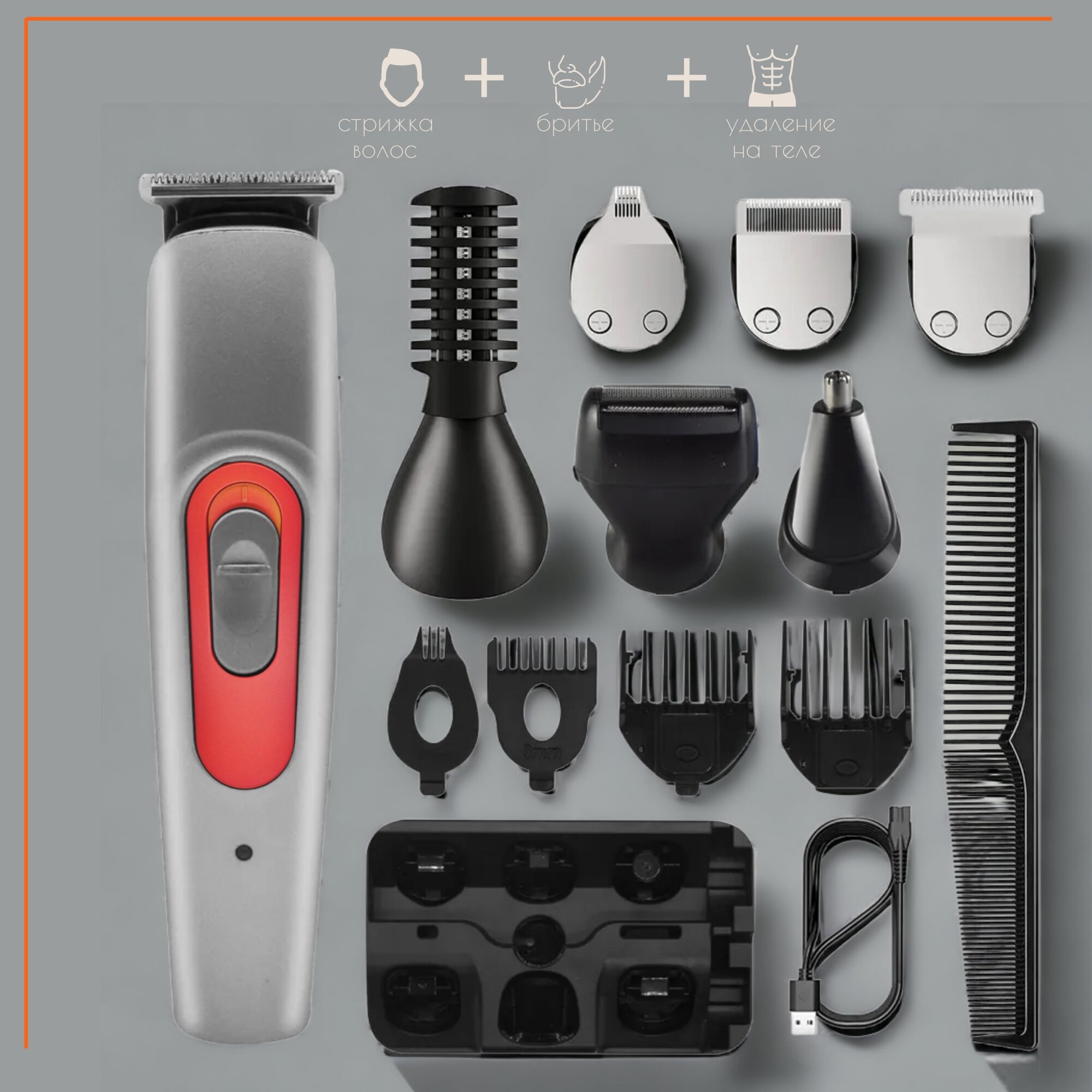 Триммер для бороды и тела универсальный многофункциональный 6 в 1, Бородовой
