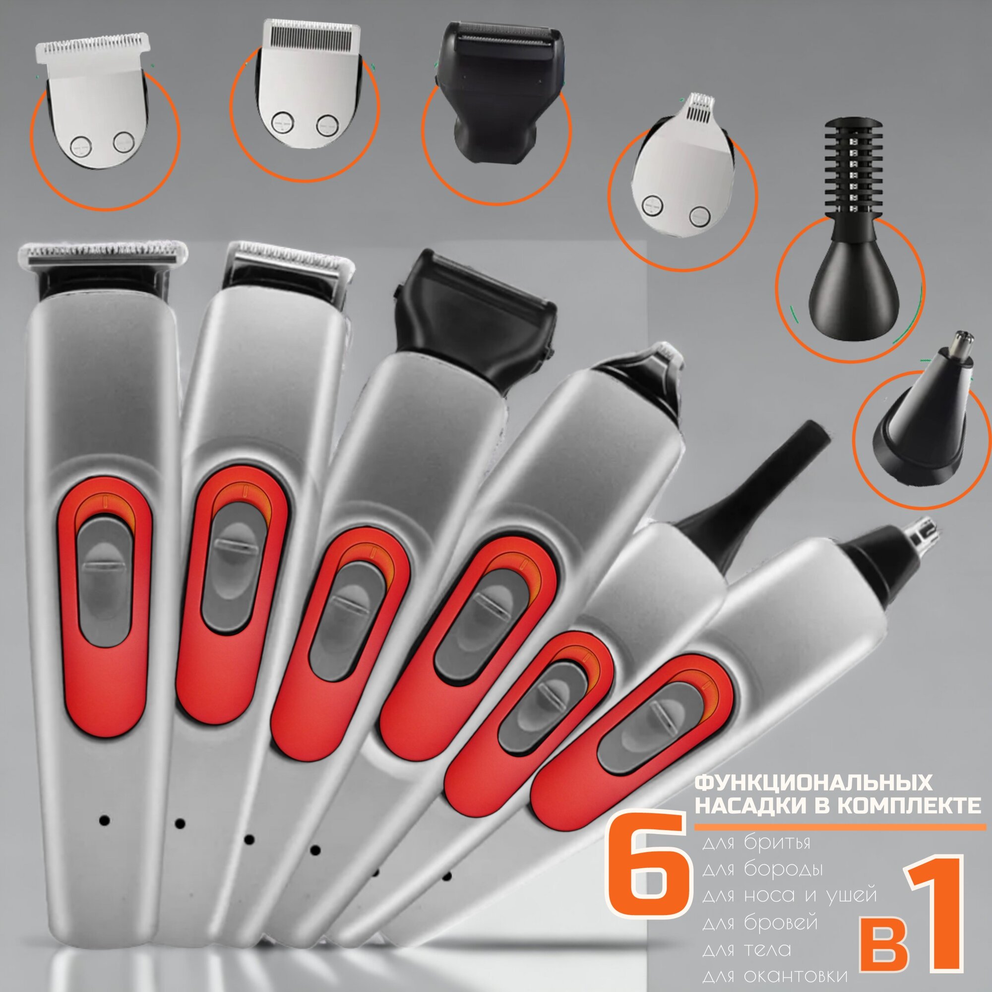 Отзывы на Профессиональный беспроводной триммер 6 в 1, машинка для волос, стрижка усов и бороды, салонная, домашняя, уход за волосами, набор серый