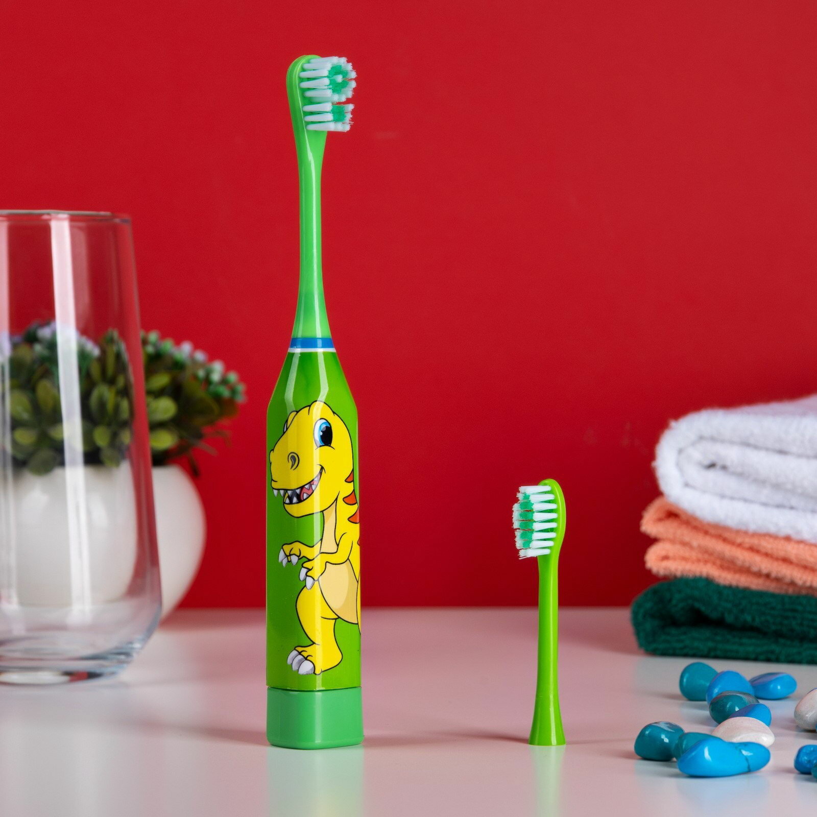 10 цен на Детская электрическая зубная щетка Luazon LP-008, вибр, 31000 дв/мин, 2 насадки, 1xАА, зелёная