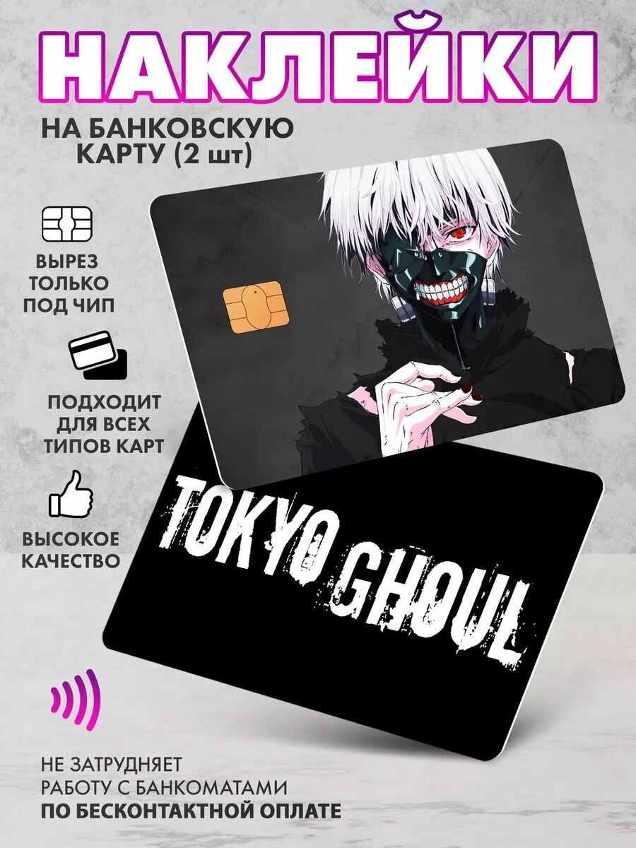 Набор виниловых стикеров-наклеек на банковскую карту "Токийский гуль" (Tokyo Ghoul)/Без выреза для номера, для всех типов, 2 шт (По одной на каждую сторону) информация: