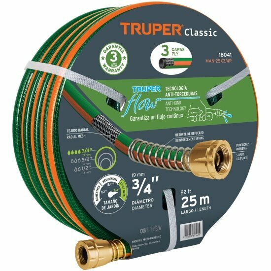 Шланг садовый трехслойный 3/4" 25 м TRUPER MAN-25X3/4R, 16041 информация: