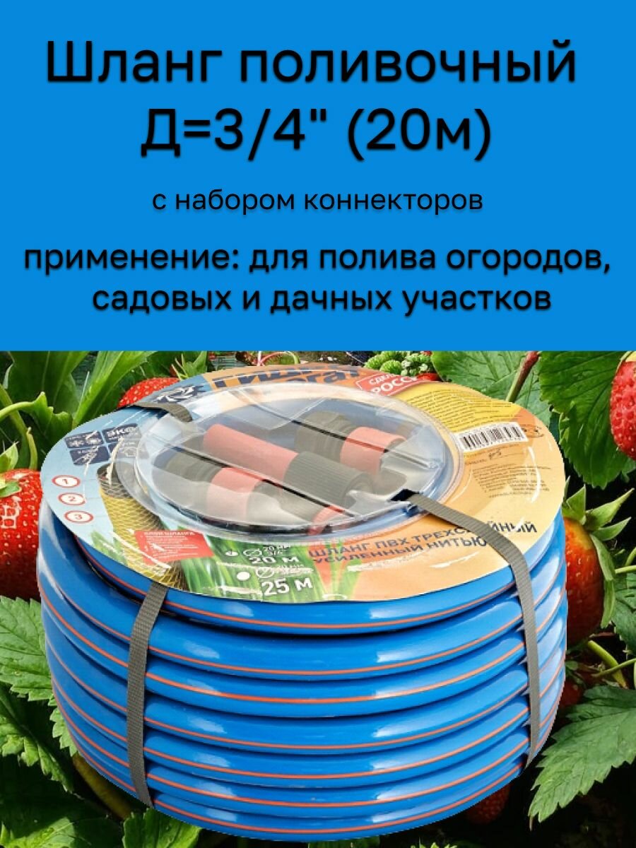10 цен на Шланг поливочный Д=3/4" (20м) арм.3-х сл. Гидроагрегат синий с оранжевой полосой (набор коннекторов)