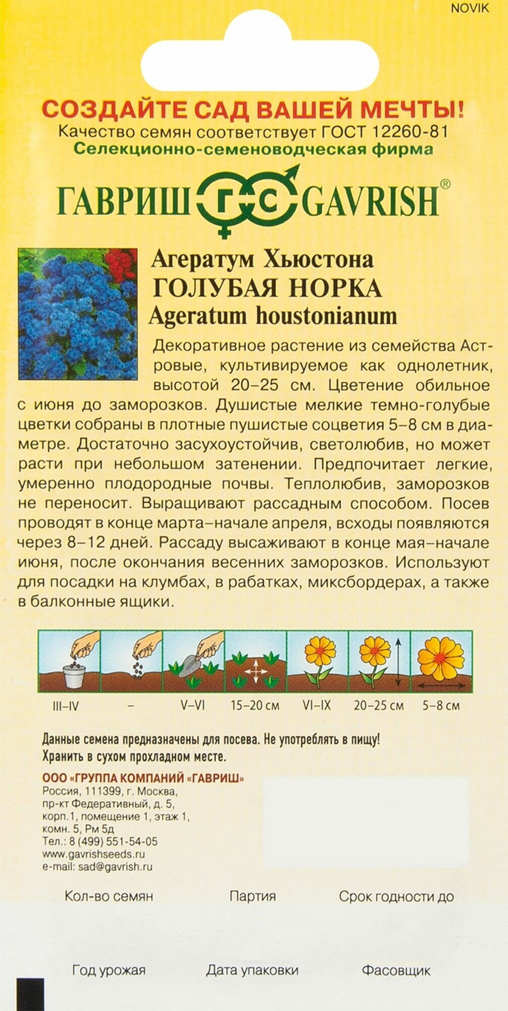 Агератум Голубая Норка 0,1г Гавриш информация: