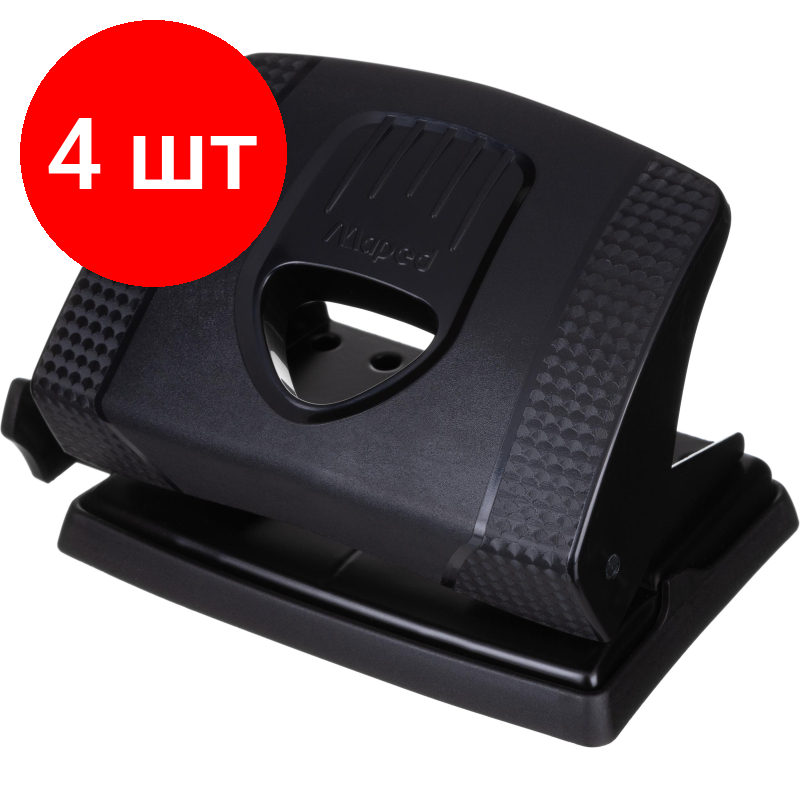10 цен на Комплект 4 штук, Дырокол ESSENTIALS экологичн. на 20/25 листа,2 отв, с лин, карбон. покр