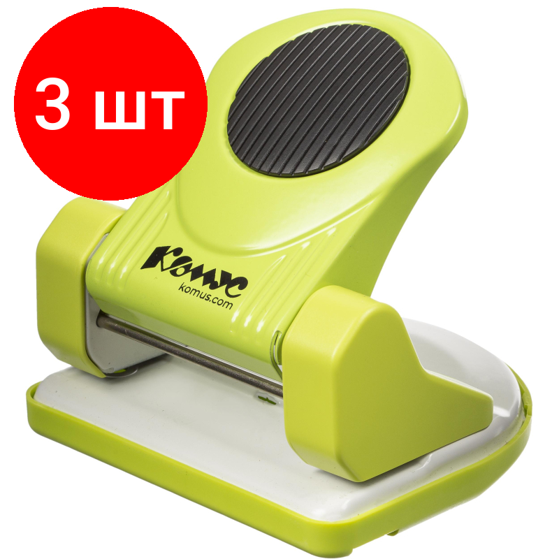 Отзывы на Комплект 3 штук, Дырокол Комус MPG20 до 20 лист, металл, с линейкой и блокиратором, зелёный