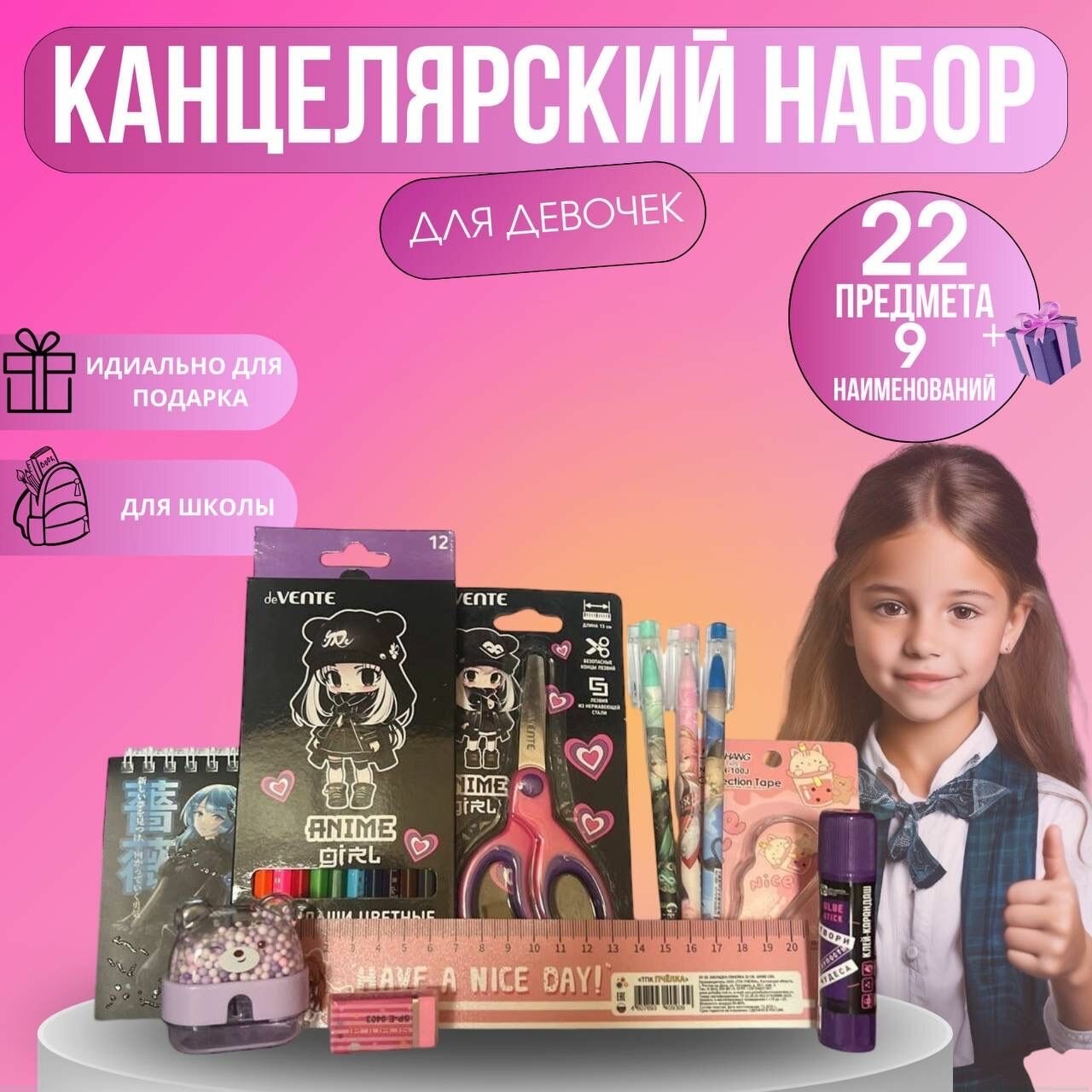 Отзывы на Подарочный набор первоклассника / Набор творчества для девочки / канцелярия анимэ для школьника