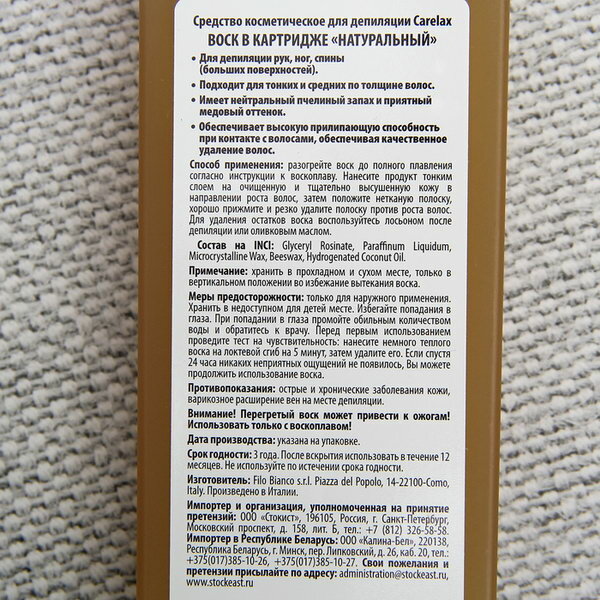 Воск в картриджах Carelax Натуральный, 100 мл Carelax 3464807 . 564 ₽