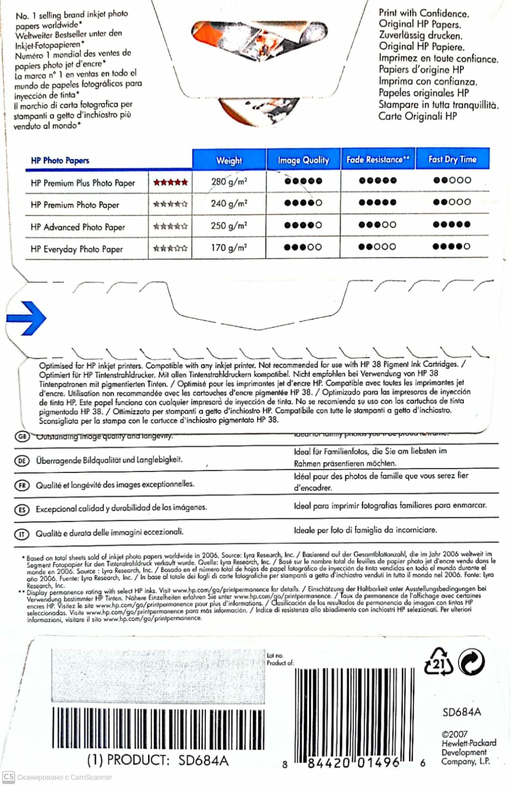Отзывы на Бумага HP SD684A (2шт х Q8027A) Глянцевая высшего качества, 10x15, 280 г/м2 (25 листов)