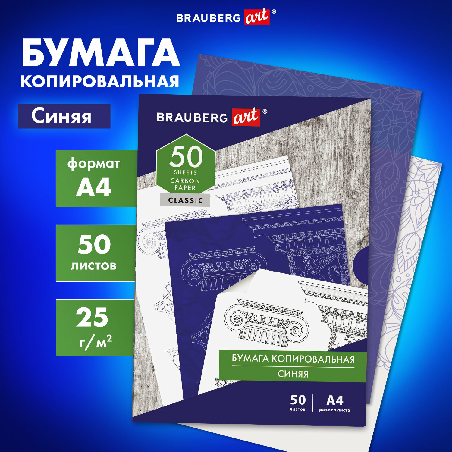 Копирка / бумага копировальная для копирования синяя А4, 50 листов, Brauberg Art Classic, 112402 информация: