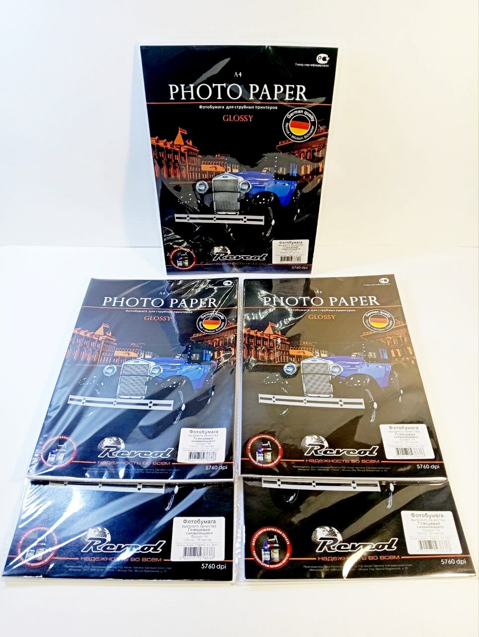 Отзывы на Фотобумага Revcol A4 самоклеящаяся глянцевая для струйных принтеров 128 гр/м², 5 пачек по 25 листов