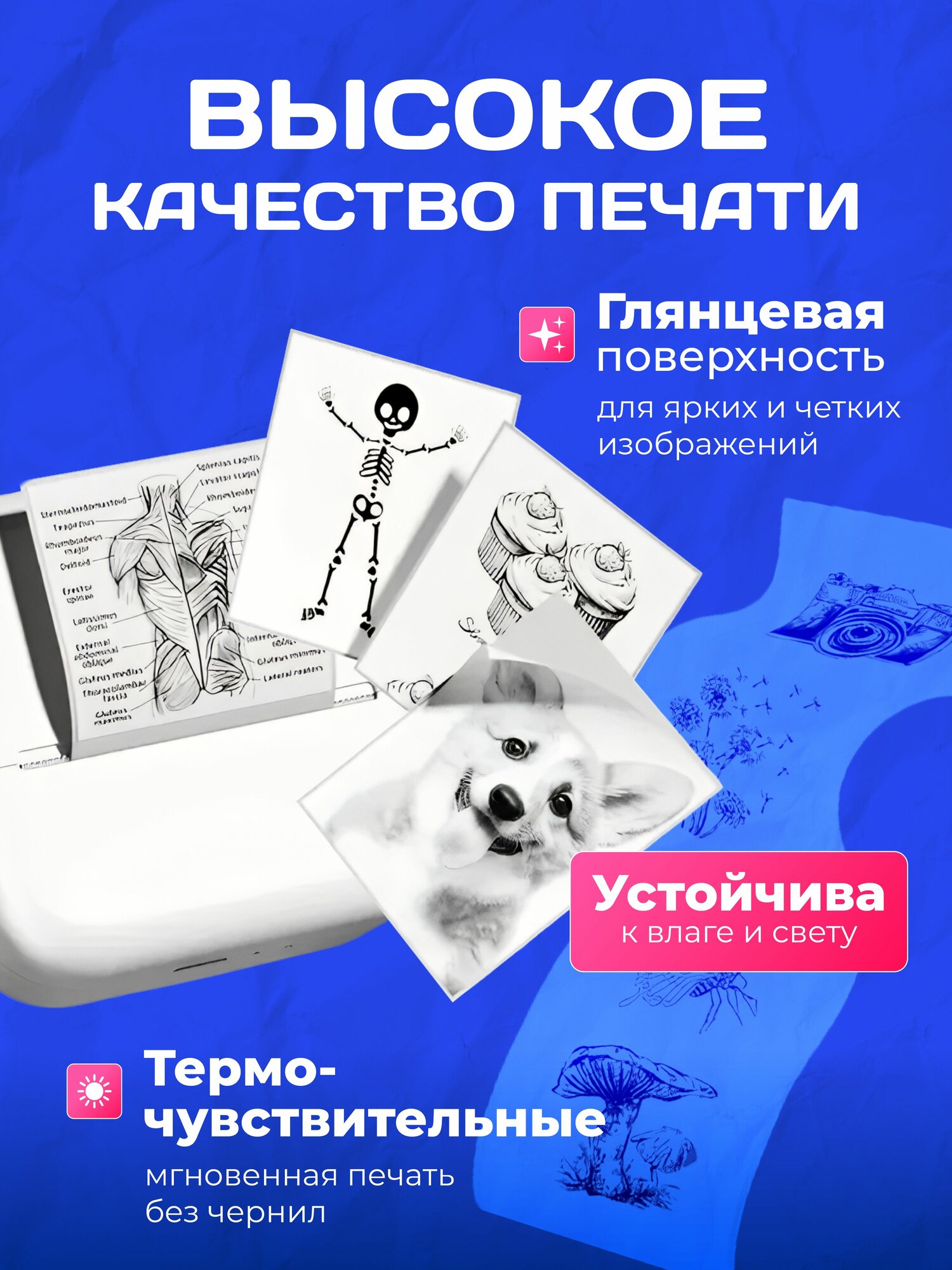 | Тип бумаги | Бумага для мини принтера самоклеящаяся белая 6 штук |