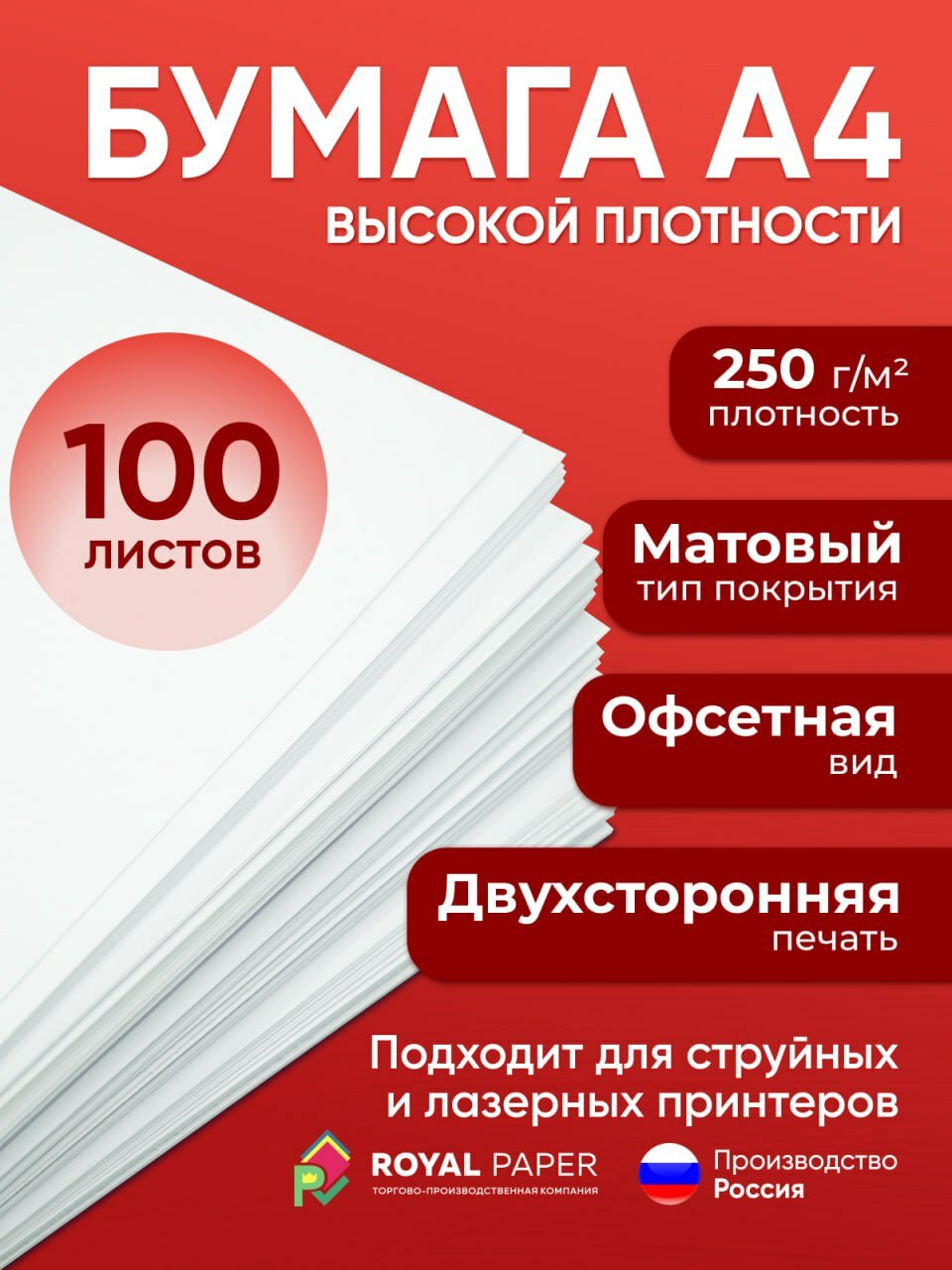 | Дополнительная информация | Подходит для печати на струйном и лазерном принтере |
