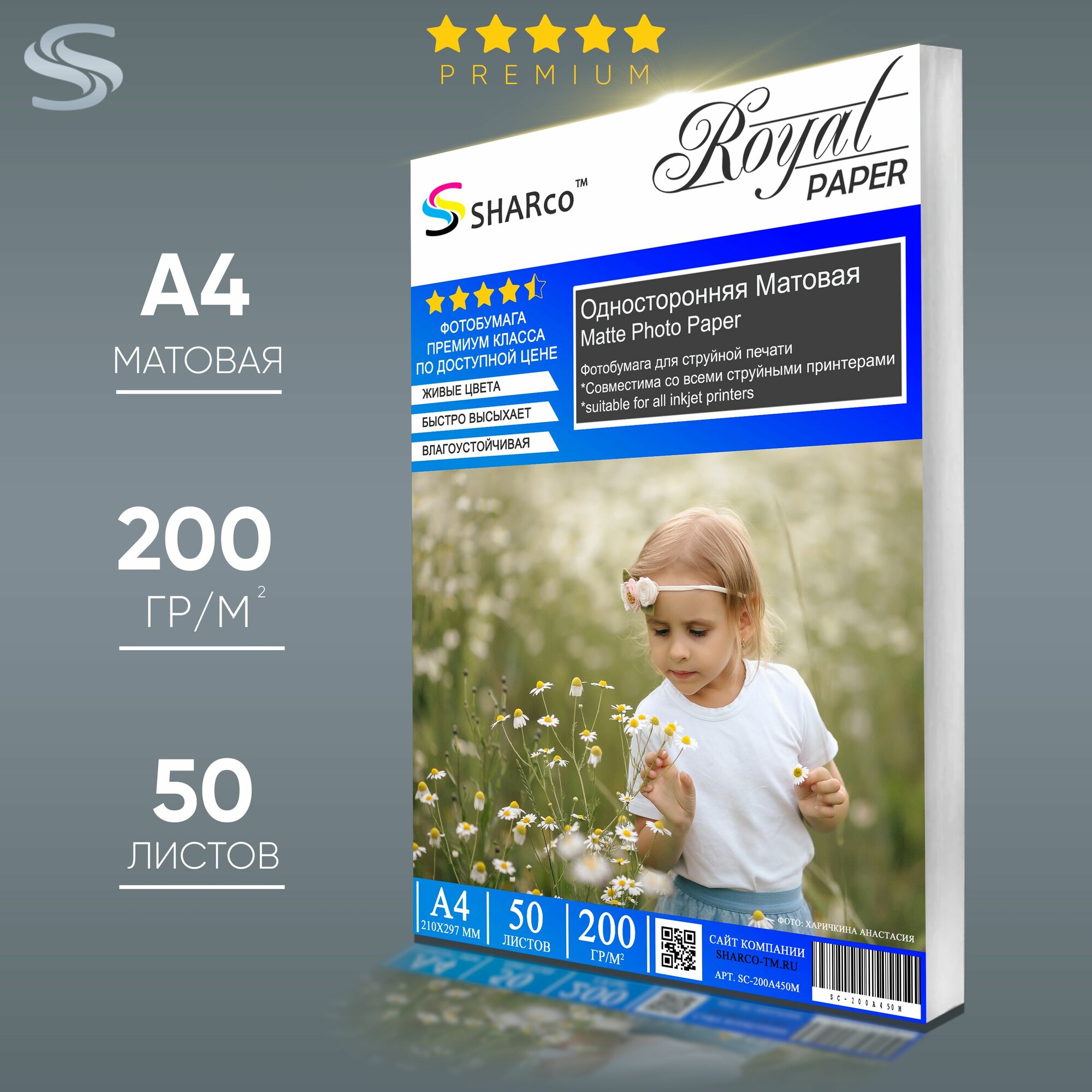 10 цен на Фотобумага премиум класса Sharco матовая А4, 200г, 50 листов Matte Photo Paper