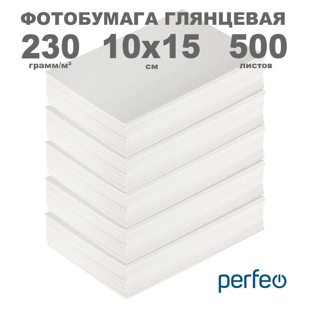 Фотобумага 10x15 (10х15, 10*15) глянцевая 230 г/м2 500 листов Perfeo / Для принтера, для струйной печати