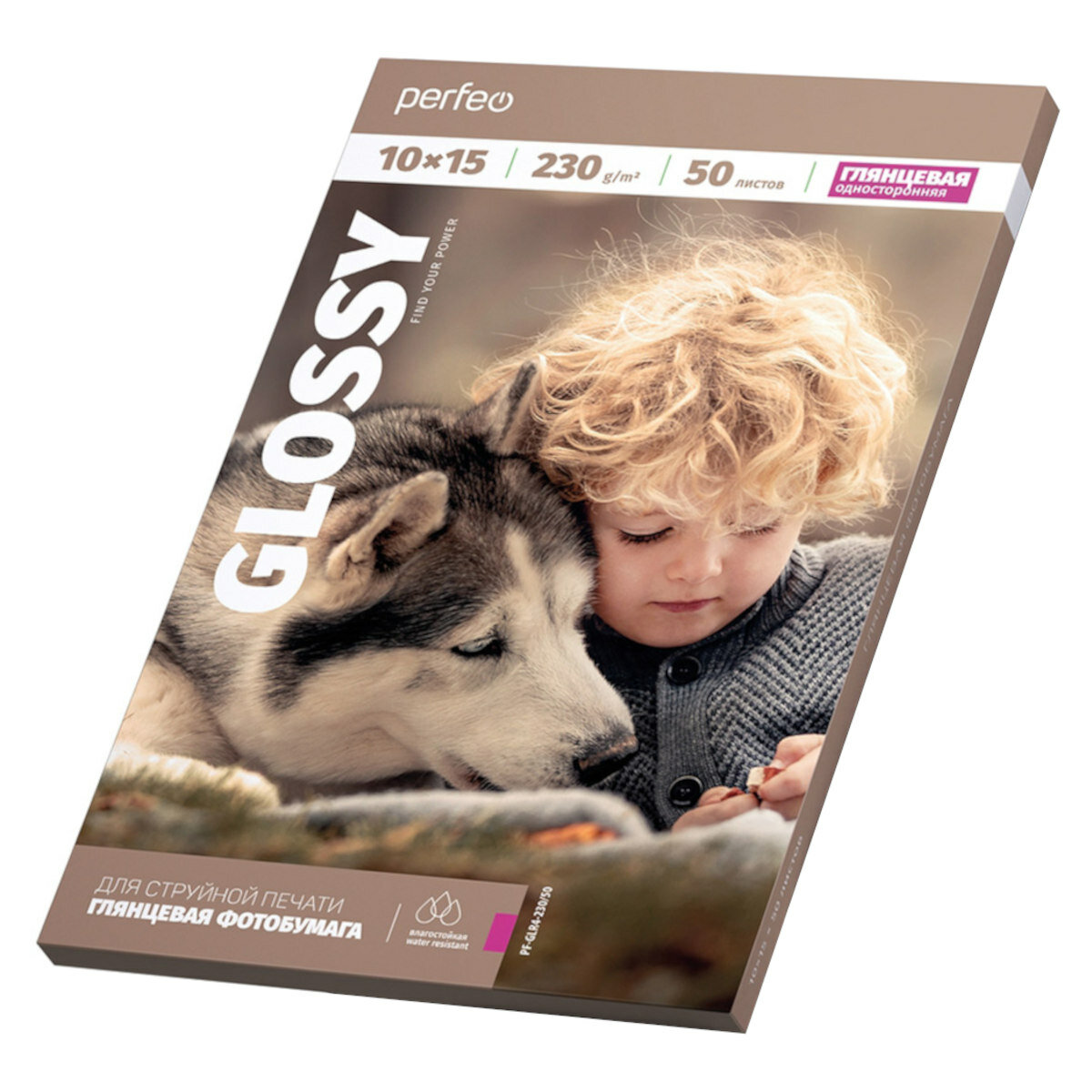 Фотобумага 10x15 (10х15, 10*15) глянцевая 230 г/м2 50 листов Perfeo / Для принтера, для струйной печати информация: