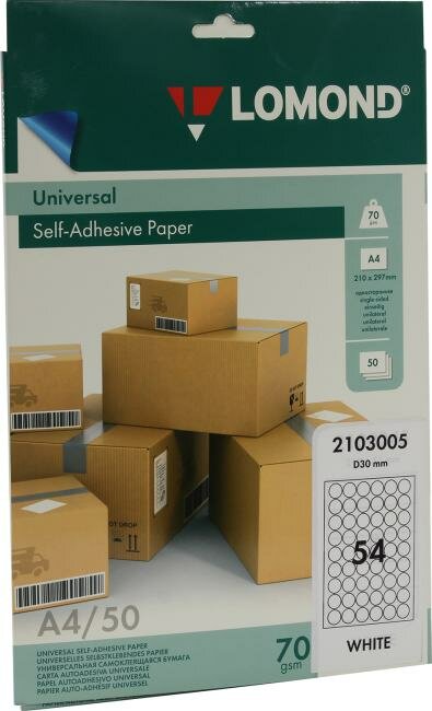 10 цен на Самоклеящаяся бумага Lomond круглые этикетки диаметр 30 мм по 54 шт на 50 листах A4 (2103005) 70 г/м2